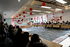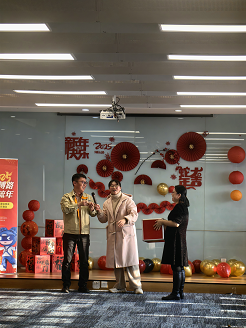 復(fù)城辦公區(qū)同樣熱鬧非凡。活動(dòng)現(xiàn)場(chǎng),彩帶、氣球、燈籠等裝飾品將空間裝點(diǎn)得溫馨而喜慶。隨著歡快的音樂(lè),活動(dòng)正式開(kāi)始。“招財(cái)進(jìn)寶”箭指好運(yùn),“心有靈犀”考驗(yàn)搭檔之間的默契,“妙語(yǔ)連珠”技巧與智慧并用,“珠聯(lián)璧合”展現(xiàn)平衡技巧,“幸運(yùn)圓環(huán)”收獲滿滿驚喜。大家在歡樂(lè)、溫馨的氛圍中迎接新年的到來(lái),共同創(chuàng)造美好的回憶。