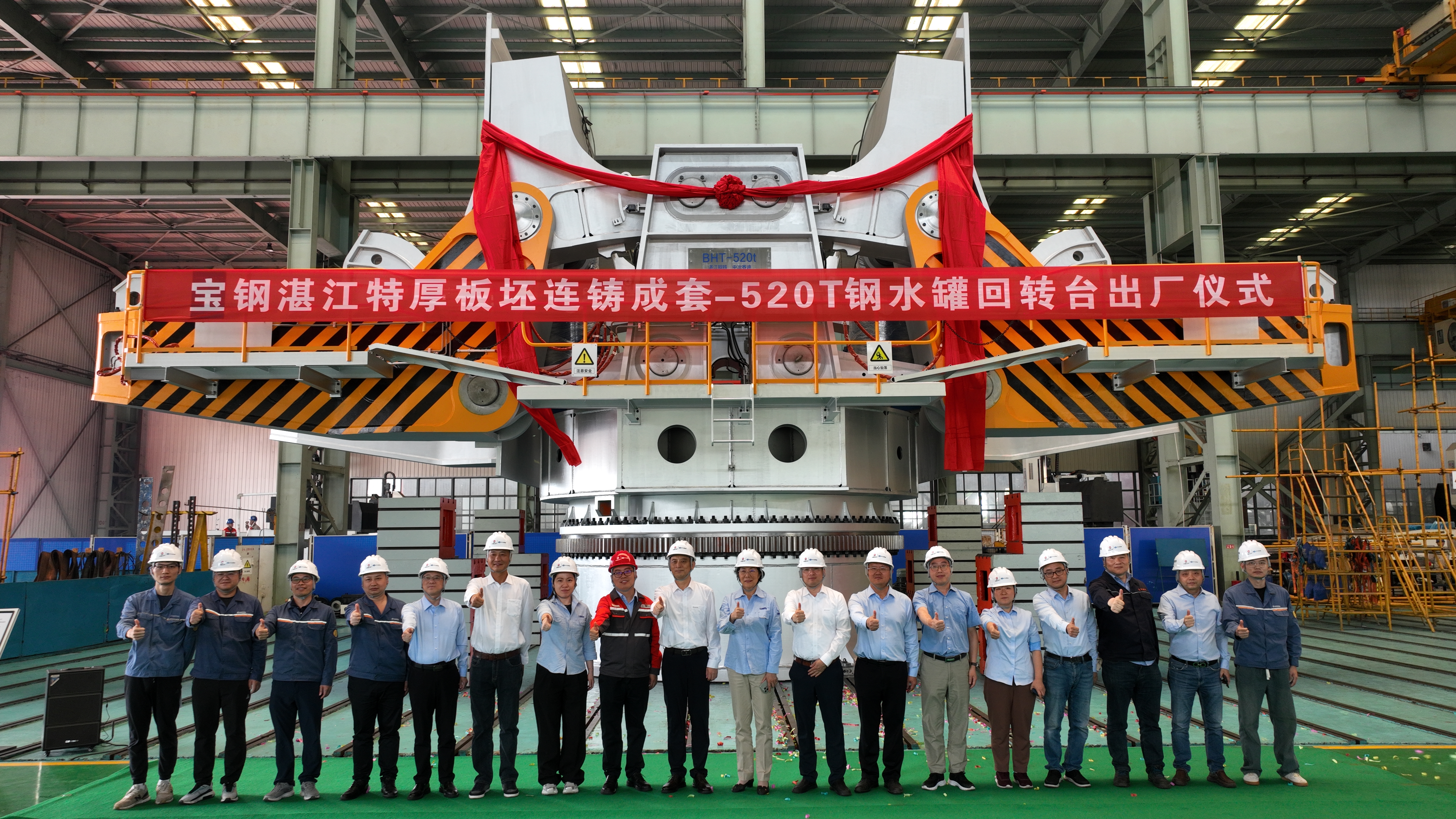 鋼水罐回轉臺作為連鑄流程的關鍵裝備,肩負確保連鑄過程連續性的重要作用,其性能直接關乎產線效率。寶鋼湛江項目的鋼水罐回轉臺最大載荷達520噸,是當前國內最大的鋼水罐回轉臺,經過縝密策劃與高效組織實施,成功在6個月內圓滿完成設備制造任務,創造了同類設備制造周期新紀錄,實現了里程碑式的突破。
